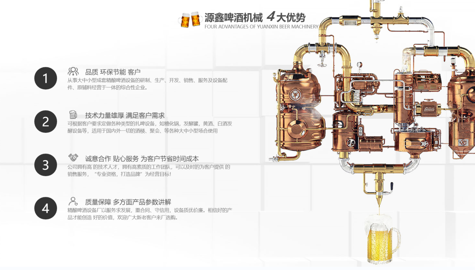 想要啤酒有好的口感,不僅要有良好的釀制工藝,主要的還需要有優良的設備,因此我們經...